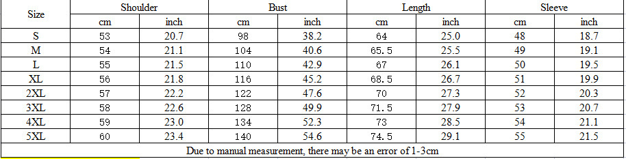 Sizes: S, M, L, XL, 2XL, 3XL, 4XL, 5XL