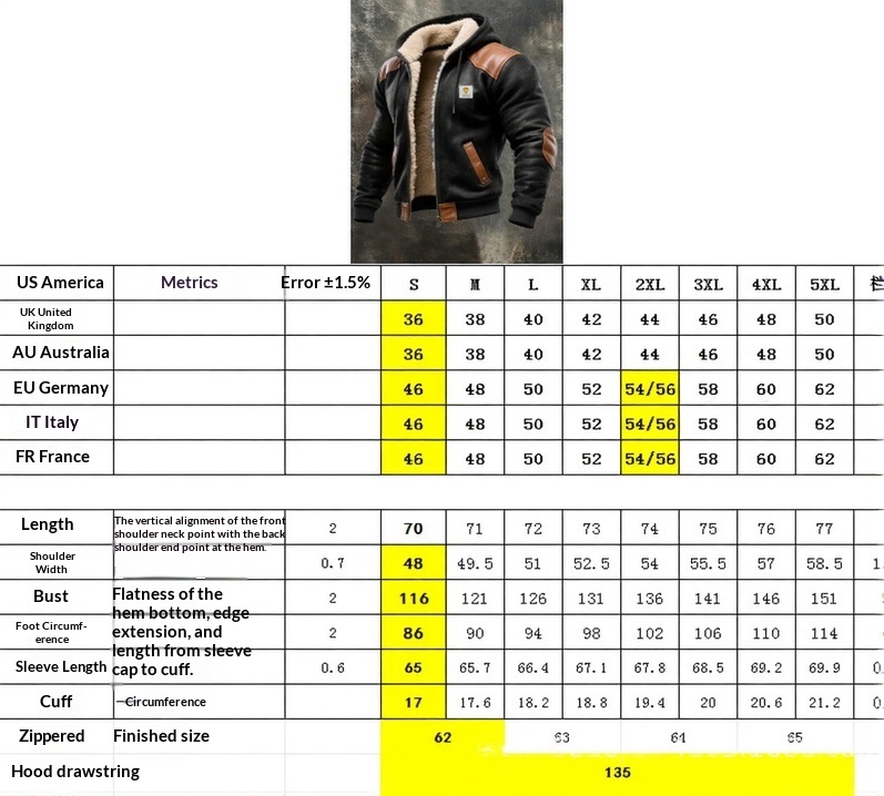 Mens Loose-Fit Wrinkle-Resistant Fleece-Lined Thick Hooded Jacket